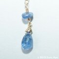 ピアスパーツに2本になるようにチェーンを下げ、宝石質ブルーサファイアのボタンカットを下げ、その下に宝石質ブルーサファイアAAAのドロップブリオレットカットを下げました。