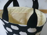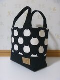 可愛いねこたま柄の帆布(黒)と8号帆布をコンビにしてランチバッグを作成しました。