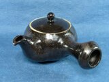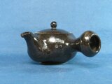 見た目で中サイズ(2人分くらいでしょうか)の,陶器の急須です.不規則なツヤのある黒い天目釉をかけました.
