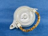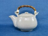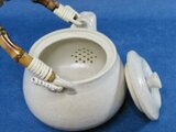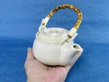 陶器のどびんです.2人分くらいはしっかり入る中型のサイズになるかと思います.天然成分の斑点のある藁白釉をかけました.国産根竹のちゃんとしたツルを付けました.