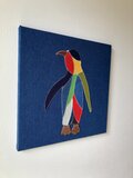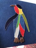 素材感のあるデニム生地にカラフルなペンギンの絵を表現しました。