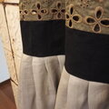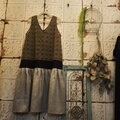 かなりローウエスト目で黒リネンの切り替え、グレーリネンのプリーツスカートと個性的な1着です。