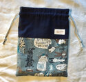 巾着袋わんこいっぱい柄パープルグレー 裏生地付き マチなし