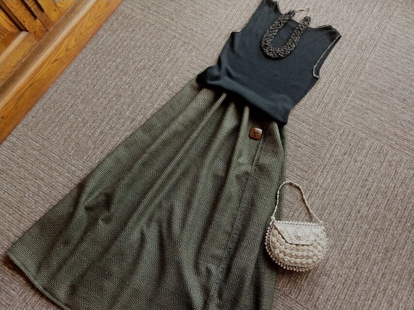 いつの間にか秋冬物のご注文が増えましたが、ウールにコットンが入っているので、3シーズンお楽しみいただけるスカートです。