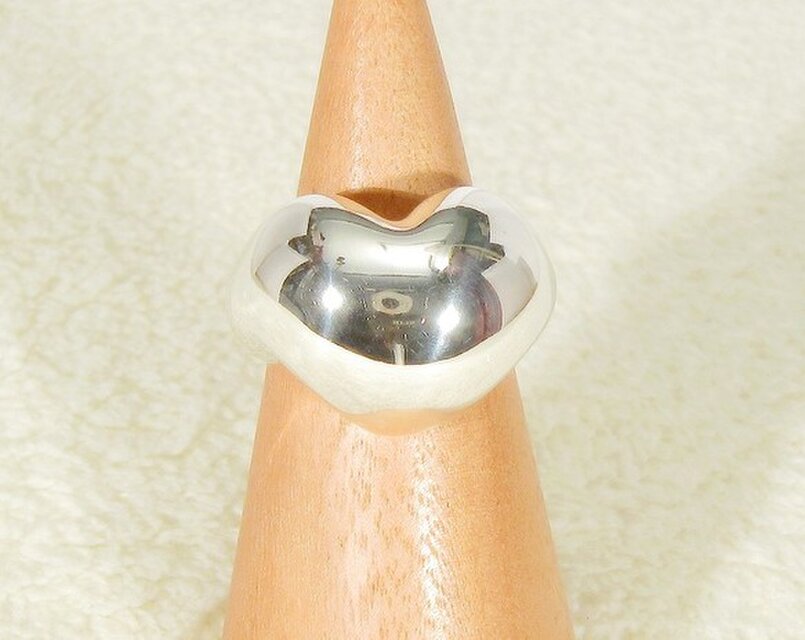 ハートをモチーフにした、とてもふっくらとしたフォルムの指輪です。ロストワックス(専用のロウで枠の原型を作り、その形通りに鋳造する製法)で作った、SV925製のオリジナルの枠を使っています。