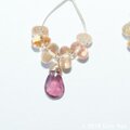 インペリアルトパーズの中間に、宝石質ロードライトガーネットAAAのペアシェイプブリオレットカットを一粒下げています。