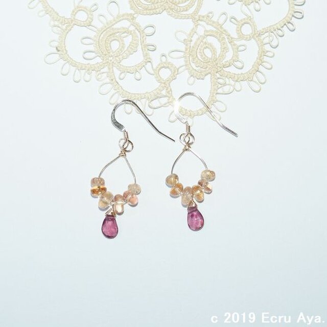 インペリアルトパーズの深いオレンジに、ロードライトガーネットのピンクバイオレットが引き立て合って、美しいピアスになり、とても嬉しかったです。