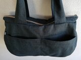 オールドデニム生地で表片側全面ポケットに仕切りを施したバッグを作りました。
