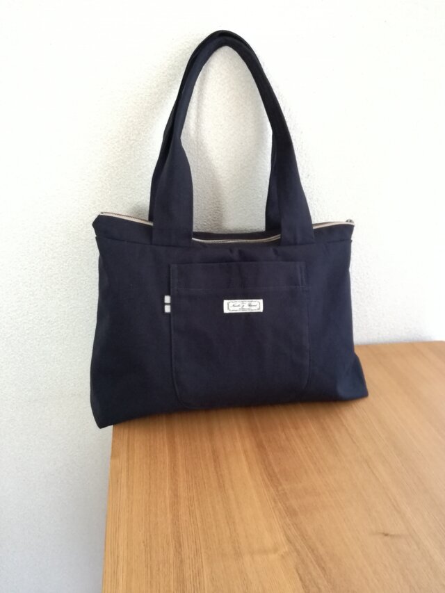 ネイビーカラーの11号帆布でショルダーバッグを作りました。