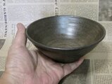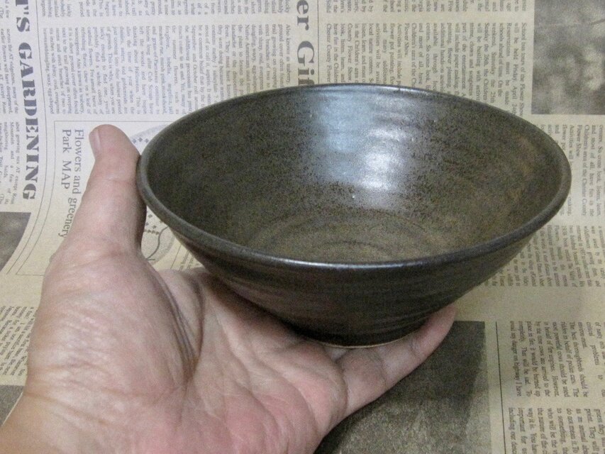 陶器製,小料理屋さんで出てきそうな深めの小鉢です.濃淡の表情のある黒い釉薬をかけました.