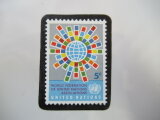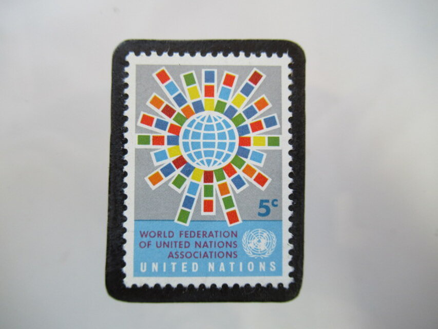 ★★アメリカ 国連1966年「世界同盟」切手ブローチ5425