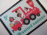 アメリカ 国連1966年「ユニセフ」切手ブローチ5434