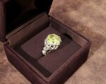 大粒のレモンクォーツを、個性的なデザインのSV925の枠に留めた指輪です。ロストワックス(専用のロウで枠の原型を作り、その形通りに鋳造する製法)で作った、オリジナルの枠を使っています。
