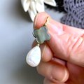 フラワーモチーフの黒蝶貝(黒真珠の母貝)としずく型淡水真珠のピアスです