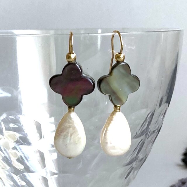 素材:黒蝶貝・淡水真珠・k14ゴールドフィルド