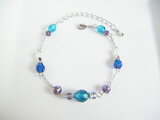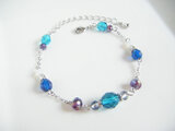 ちょっぴり大きめサイズのブルージルコン色のファイアポリッシュチェコビーズをメインにバイオレットやブルー、ホワイト系のガラスビーズやチェコビーズをシルバー色のチェーンと合わせたお洒落で涼しげなブレスレットとなっております♪