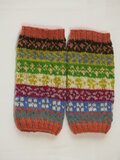 100色の毛糸から選んで一針一針編んだ、カラフルなフェアアイルのレッグウォーマーです。