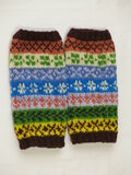100色の毛糸から選んで一針一針編んだ、カラフルなフェアアイルのレッグウォーマーです。