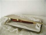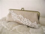 ナチュラルな雰囲気のエクリュリネンにアンティークレースをのせたがま口ペンケース