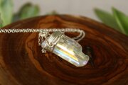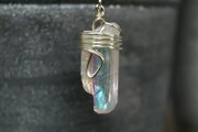 虹色の美しい輝きの、エンジェルオーラダンビュライトのタンブルをシルバーのワイヤーで巻きました。