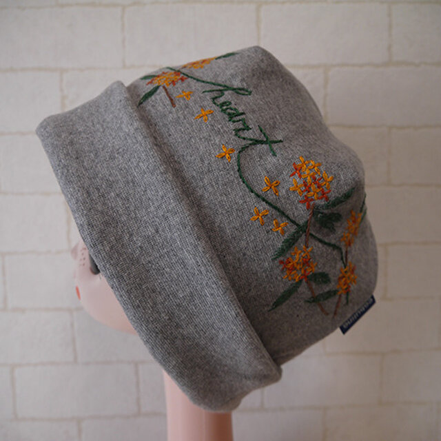 コットン素材スパンフライスニット生地で作ったニット帽(金木犀)