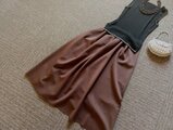 ★一点物★ポリウレタン★焦げ茶★ギャザースカート★通勤にも★★受注製作★