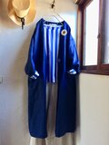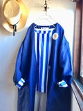 しっかりとした明るめのネイビーリネンキャンバスを使ってアトリエコートを