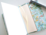リバティの人気生地、ワイルドフラワーズ Wild Flowers(水色)のラミネート生地(つや無)でほぼ日手帳 オリジナル (A6 文庫サイズ)の手帳カバーを作りました。