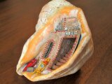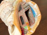 海辺で拾った貝がらの内側に、ミニチュアのお店屋さんをつくりました。