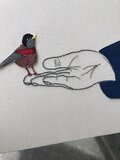 写真と微妙に配置や、手のしわの刺繍などが違う場合があります。またアートの感覚で描いているためえんぴつの残りあとなどがある場合があります。こちらの一点物という、手作業をご理解いただける方のみお願い致します。
