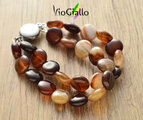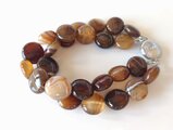 『ブラウンストライプアゲート・コイン形の二連ブレスレット』