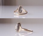 商品画像や説明の通りで、素敵なリングでした。氷ひすいの優しい色と、アームは実は仏さまがいるという、個性的なデザインに惹かれました。また、仕上げの艶消し加工が本当に綺麗です。指にスッと馴染み着け心地も良いです。たいへん気に入りました。大切にします。丁寧なご対応もありがとうございました。