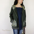 [予約販売] カーキとリバティいちご泥棒羽織りパーカー