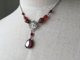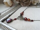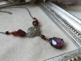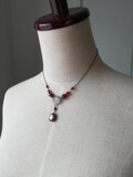 #しずく型 #スワロフスキー #ダークレッド #赤系 #スカーレット #Yネックレス #秋色 #秋色アクサセリー #ボルドー #アンティーク風 #金古美 #チェーン #透かし #ローズバッド