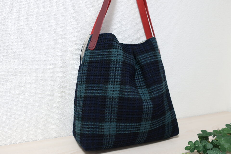 お洗濯は 手洗いでお願いします。持ち手は天然素材の本革ですので毛羽立ち