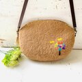 羊毛フェルトのカラフルな樹木のショルダーバック(キャメル)