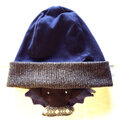 毛糸を編んだものでなく、ニット生地を裁断し、ミシンで縫いました。リバーシブル使いになっています。