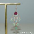 二点目は、外側から宝石質ローズクォーツAAA、宝石質インカローズAAA,宝石質ロードライトガーネットAAAのマロンブリオレットカットを、サイズグラデーションになるようにワイヤーをペアシェイプにお作りし、少し大きめな丸カンに下げました。