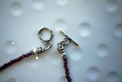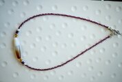最初ネックレス部分をブラックスピネルにしてみたのですが、印象がシャープ過ぎてきつい表情になってしまいました。紫がかったガーネットは、ブラックスピネルより柔らかな雰囲気で、隣のアメジストや琥珀ともふんわりと溶け合っているように感じました。
