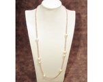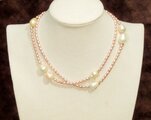 個性的な形の大粒の淡水セミバロックパールと、艶がとても綺麗な小粒の淡水パールを使ったロングネックレスです。