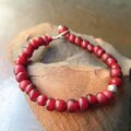 アンティーク 金赤ホワイト 丸 + チンシルバー 丸 ブレスレット ブレスレット 百世 momotose(東)