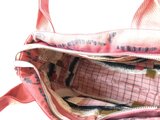 ピンクベージュの抽象柄の名古屋帯から作りました。