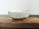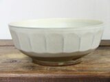 ナイフを使って面取りを施し器全体に化粧泥を掛けてから蘭越釉を掛けて焼成しています。