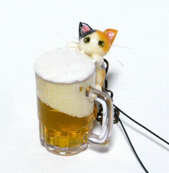にゃんこのしっぽ〇にゃんこの生ビール〇三毛猫〇猫〇ストラップ