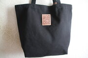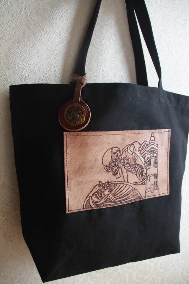 レザーカービングを施した本革を使用した、帆布のトートバッグです
