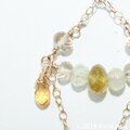 中央左右に渡してあるワイヤーには、極上カット宝石質スキャポライトAAAとプレナイト、宝石質グロシュラーガーネットAAAを使用しています。