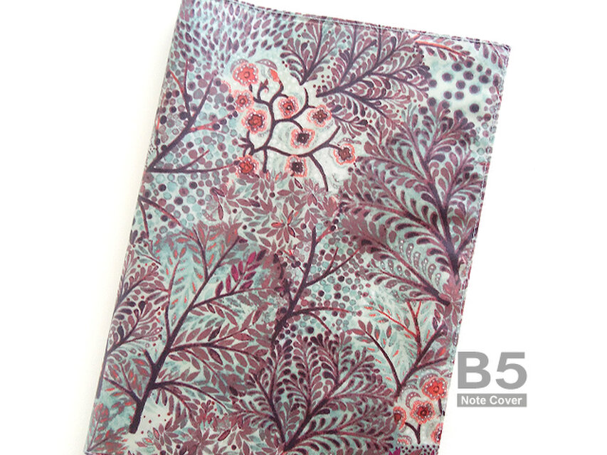 リバティの人気生地、デビッドジョー David Joe(グレー)のラミネート生地(つや無)でB5サイズ(大学ノート)のノートカバーを作りました。