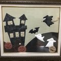 油彩キャンバスに布を貼り、キルト綿を入れてチクチクしました。
