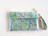 ポケット仕切りのクリアポーチ Sサイズ リバティ ワイルドフラワーズ 水色