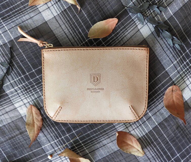 ・イタリアンレザー(アラスカ)の手縫いミニポーチです。表裏にダーツを入れて縫っておりますので程よいマチができ、小物を収納するのに最適です。